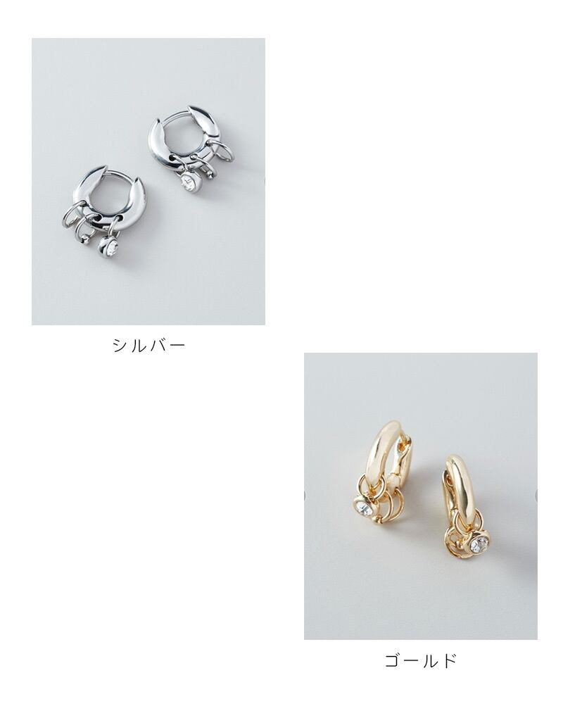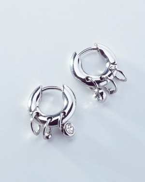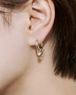 キャッチが無く、ピアスホールに通してカチッと閉じるワンタッチピアスは、耳元を包み込むように装着するので、360°どこから見ても美しいデザインです。キャッチをなくす心配もなく、ストレスフリーなのも嬉しいポイント。ベーシックなフープラインに、小振りなチャームやビジューが組み合わさったデザイン。程よいサイズで使いやすく、飽きのこないシンプルさがオン/オフ問わず、デイリーアクセサリーとして活躍してくれます。