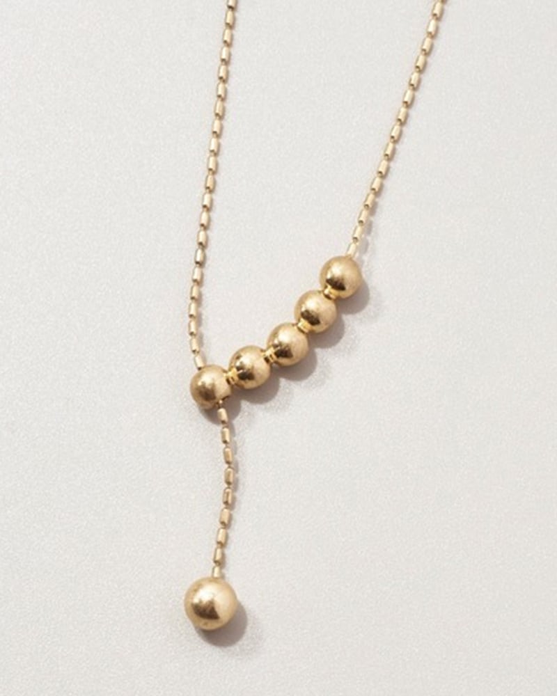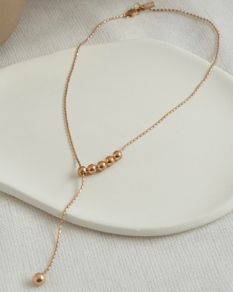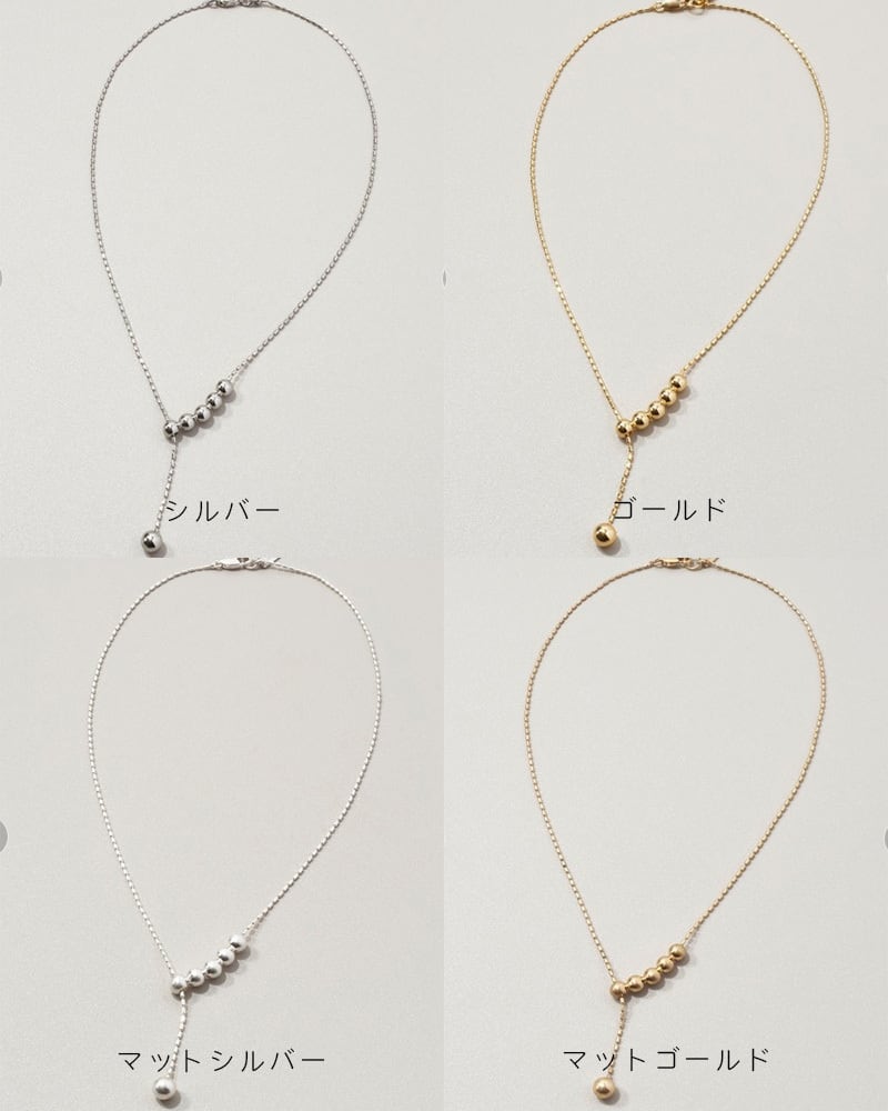 華奢なチェーンとメタルボールを組み合わせたY字シルエットのネックレスは、身に着けるだけで洗練されたスタイルに。モチーフを動かすことで長さを調節できるので、その日の気分やコーディネートによって雰囲気を変えられるのもポイントです。カジュアルな普段使いはもちろん、結婚式や卒業式・入学式などのオケージョンシーンやパーティーシーンなど、ファッションやスタイルを選ばずお使いいただけます。